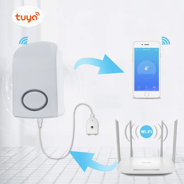 „Инсталирајте го лесно, и добивајте известувања на вашиот телефон веднаш штом се детектира вода – кога сензорот ќе почувствува вода, ќе се активира силен аларм и ќе ви испрати известување на вашиот телефон. Се поврзува преку 2.4 GHz Wi‑Fi и апликацијата Tuya Smart. Одлична инвестиција за секој дом, канцеларија или угостителски објект.