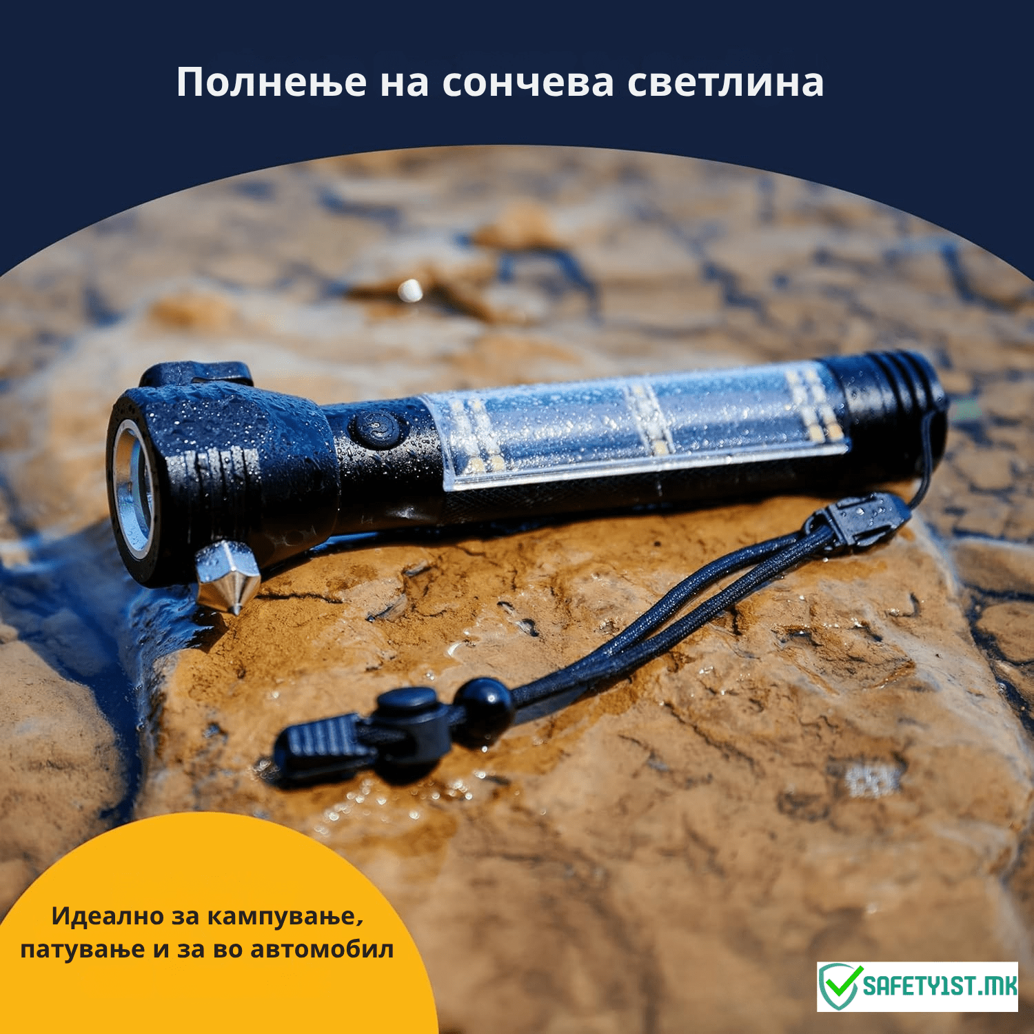 Силно LED светло (200 лумени) — совршено за ноќно движење, кампување или итни ситуации